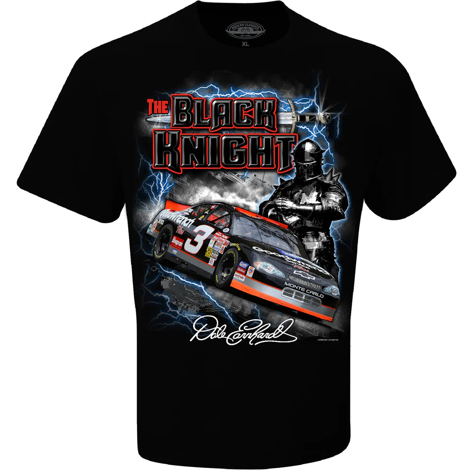 Available in a range of sizes, the Dale Earnhardt Black Knight T-shirt is designed to provide a comfortable and flattering fit for fans of all ages. Whether you're cheering on your favorite driver at the racetrack or adding to your collection of racing memorabilia, this t-shirt is sure to make a statement and honor the legacy of the Black Knight himself, Dale Earnhardt.